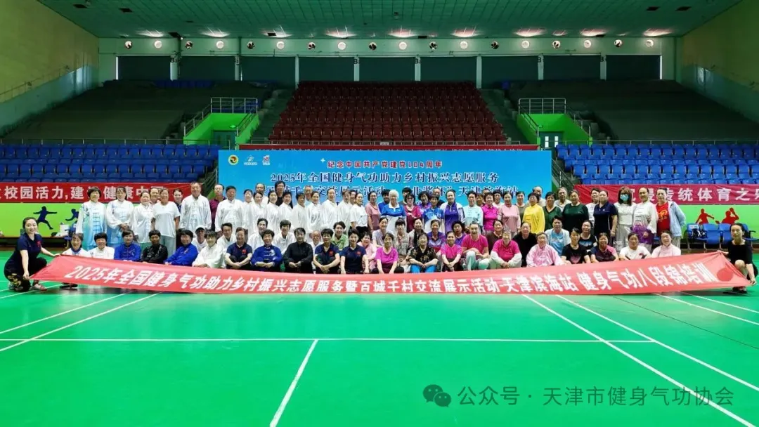 为深入贯彻落实乡村振兴战略,推动全民健身与健康中国建设,6月23日,由国家体育总局健身气功管理中心等单位主办,天津市体育竞赛和社会体育事务中心等单位承办的纪念中国共产党建党104周年2025年全国健身气功助力乡村振兴志愿服务暨百城千村交流展示活动·(北酱杯)天津滨海站健身气功骨干培训班在天津市滨海新区汉沽体育馆圆满举行。本次活动旨在巩固健身气功健康脱贫成果,提升基层群众科学健身水平,弘扬中华传统养生文化。